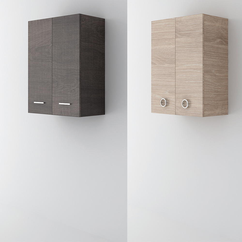 Ντουλάπια μπάνιου τα οποία μπορούν να τοποθετηθούν ελεύθερα ή να πλαισιώσουν καθρέπτη με εταζέρα. Ντουλάπια με δύο εσωτερικά αποσπώμενα ράφια. Διατίθενται σε πέντε διαφορετικές αποχρώσεις ξύλου και σε λευκό χρώμα Laminate καθώς και σε μαύρο και λευκό γυαλιστερό και ματ ακρυλικό σε mdf.