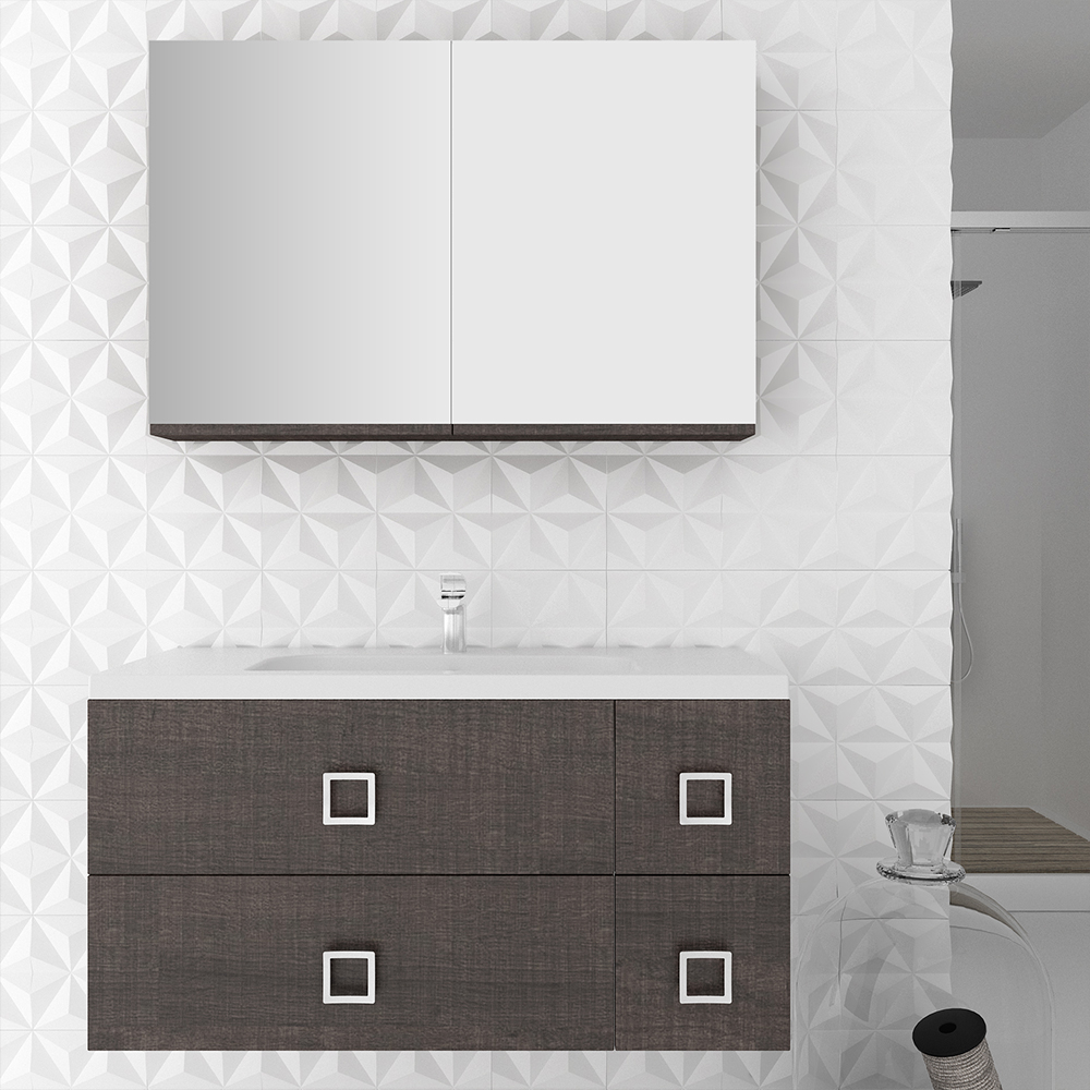 Orabella Amabile 80 με δύο Πόρτες – Κρεμαστό Έπιπλο Μπάνιου με πορσελάνινο νιπτήρα Tecla και καθρέπτη με εταζέρα και ντουλάπι
