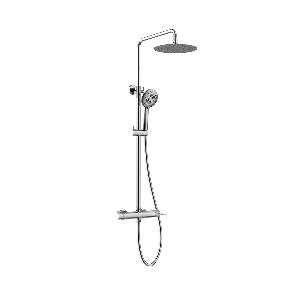 Στήλη ντουζ Elegance Column, ρυθμιζόμενου ύψους (81-118 cm) με κεφαλή από ανοξείδωτο ατσάλι, με ορειχάλκινη μπίλια Φ250. Ο διανομέας είναι κατασκευασμένος εξ ολοκλήρου από υψηλής ποιότητας ορείχαλκο. Συμπεριλαμβάνεται στήριγμά στον τοίχο ABS, τηλέφωνο 5-λειτουργιών και λείο σπιράλ τηλεφώνου (PVC) μήκους 150 εκατοστών. Διατίθεται σε χρωμέ και μαύρο ματ κατόπιν επιλογής.