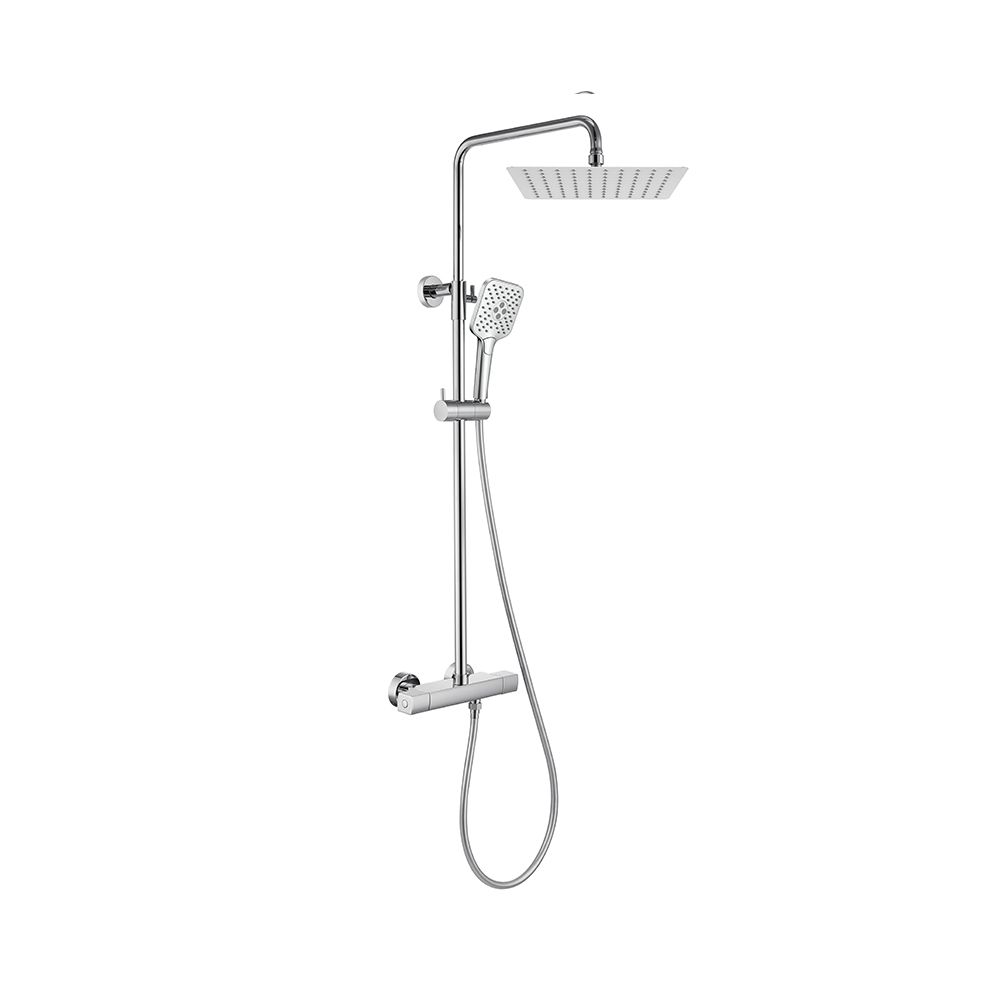 Στήλη ντουζ Marea Column, ρυθμιζόμενου ύψους (81-118 cm) με κεφαλή από ανοξείδωτο ατσάλι, με ορειχάλκινη μπίλια Φ250. Ο διανομέας είναι κατασκευασμένος εξ ολοκλήρου από υψηλής ποιότητας ορείχαλκο. Συμπεριλαμβάνεται στήριγμά στον τοίχο ABS, τηλέφωνο 5-λειτουργιών και λείο σπιράλ τηλεφώνου (PVC) μήκους 150 εκατοστών.