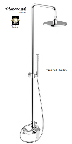 Κολώνα ντους χρωμέ, με μπαταρία Velvet Teorema, τηλέφωνο τους, κεφαλή ντους ABS στρογγυλή 20cm, ρυθμιζόμενη βέργα καθ’ ύψος 78.3-126,3CM.